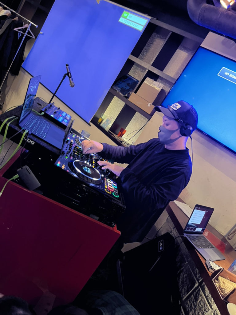 私は今回が初めての忘年会ということもあり、少し緊張していましたが会場に入った瞬間、軽快な音楽が流れおり、本格的にDJの方が様々な音楽を奏でていました!私は間近でDJを見たことがなかったため、すごく驚きました。そしてさらに驚いたのは社員の方がDJを担当されていたことです。普段とは違う一面を見ることができたのと同時に、会場の一体感もどんどん高まっていくのを感じました。